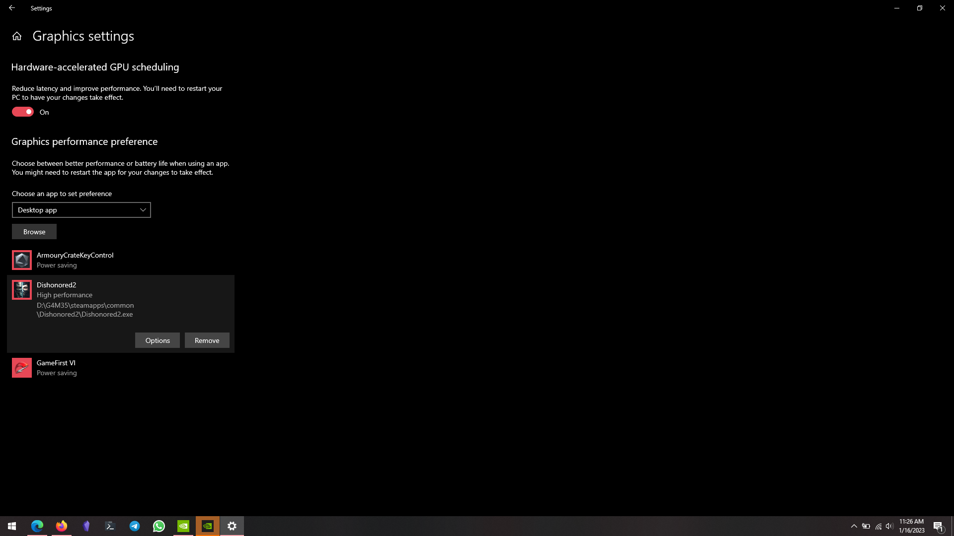 İlk attığınız yerden dishonored 2 yi seçip nvidia kartı seçin.