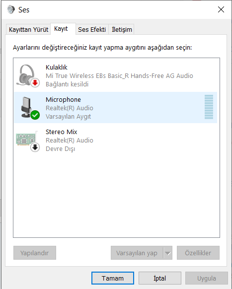 Aygıt yöneticisinden sürücüyü devre dışı bırakıp bilgisayarı yeniden başlatın, sonra tekrar etkinleştirin. (Laptoplardada oluyor Mikrofon sürücüsü)