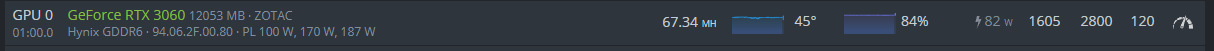 Dual kazım olsa bile 170w fazla değil mi? Bu şekilde sıcaklıklar ne peki?Beyaz Zotac 3060 LHR 170W tüketim 38.5 mh/s ETH 1200 mh/s ton kazıyorum ayarlar 1800-3000 sorunsuz kazıyor Samsung RAM.
