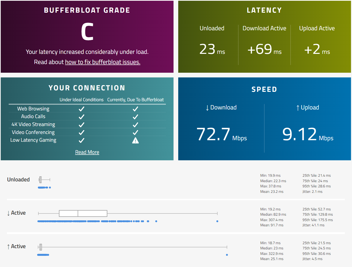 Ayarları uyguladıktan sonra bufferbloat testi yapabilirsiniz: