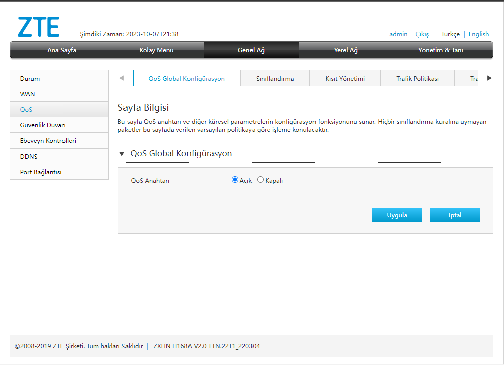 Merhaba bende Zxhn H168a v2.0 modem var download upload değerlerim düşük olduğu için kardeşim internetten film-dizi izlerken internet adeta can çekişiyor ve ping değerim uçuyor. Bu sorunu düzeltmem için bu modemde cihaz başına hız düşürme veya Wi-Fi ile bağlanan cihazların hızını düşürme gibi bir seçenek var mıdır acaba? Şimdiden teşekkürler.