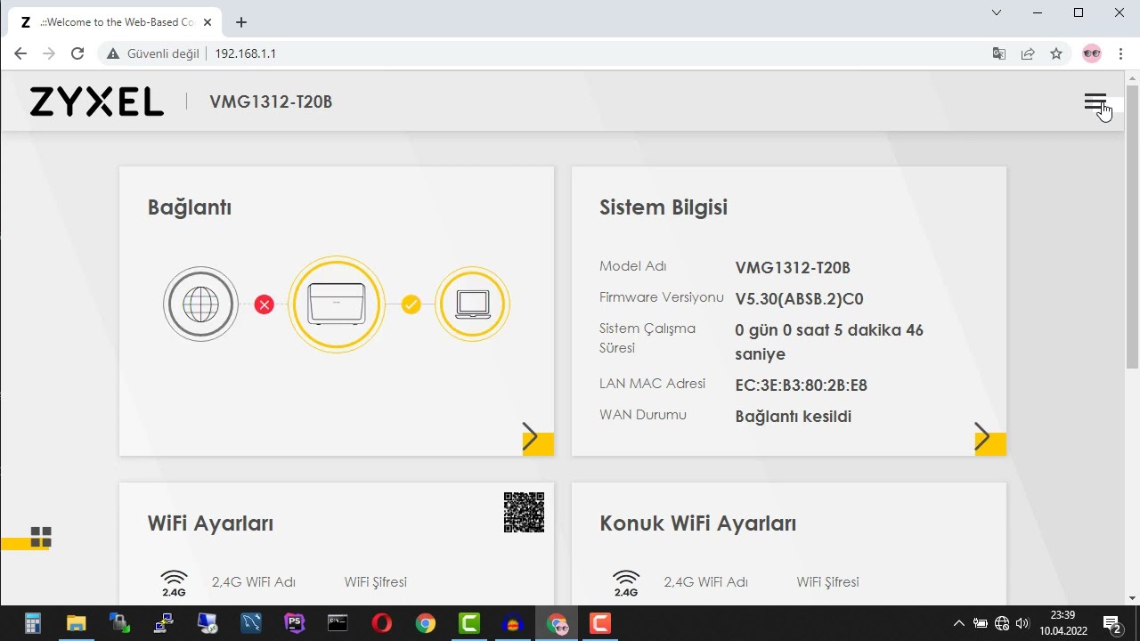 O kısım değil hocam sağ üstte üç çizgi var ona bas sonra ağ ayarına tıkla oradan genişbant kısmına tıkla ADSL veya VDSL hangisini kullanıyorsan düzenle kısmına tıklayıp o kısmı at.