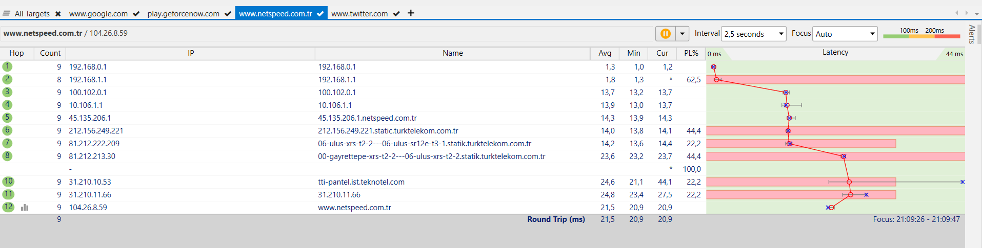 Aslında sorunu sezmem Geforce NOW Ağ Testinde sürekli paket kaybı raporlamasından sonra oldu. Normal günlük kullanımımda hiç sorun yaşamadım şimdiye kadar.